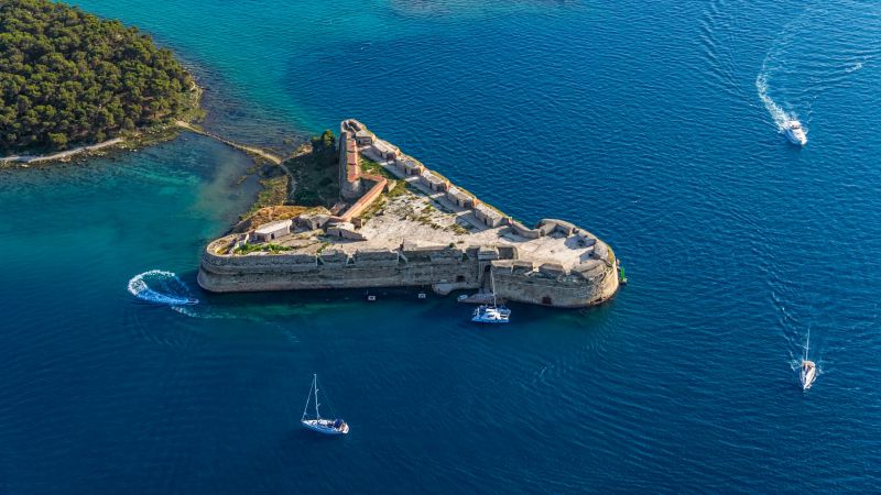 Etirée sur une quarantaine de kilomètres entre Dubrovnik et Korcula, l’île de Mljet s’épanouit en un magnifique parc naturel protégé. Une forêt de pins d’Alep y enserre le plus charmant des lacs et le plus insolite des monastères, situé sur un îlot au milieu du lac, dont l’eau fait environ 5°C de plus que celle de la mer, et qu’on peut s’y baigner dès le mois d’avril. Mljet est un ravissement des sens : une explosion de couleurs, de chants de cigales et de parfums naturels de pins, cyprès, romarin, laurier et lavande.
