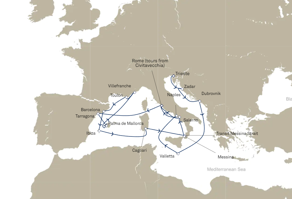 - Les excursions facultatives disponibles à Cherbourg (pour les passagers ayant embarqués au Havre le 8 juin) et à Southampton