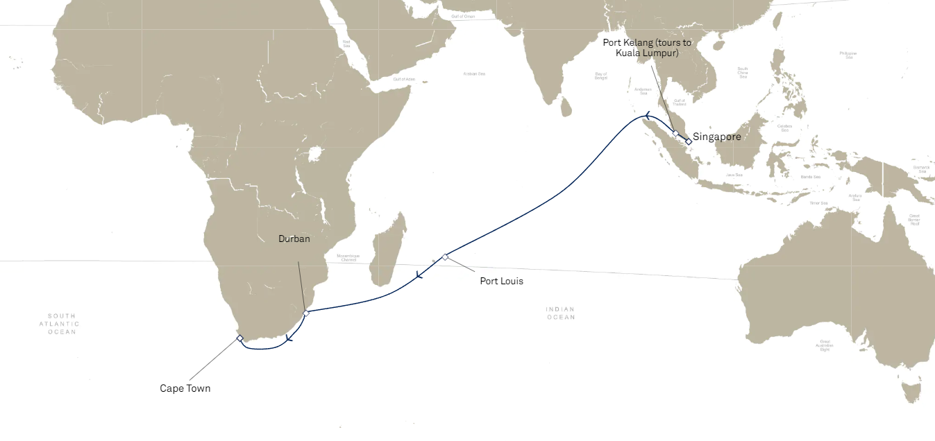 Départ : Singapour - Singapour / Arrivée : Le Cap - Afrique du Sud