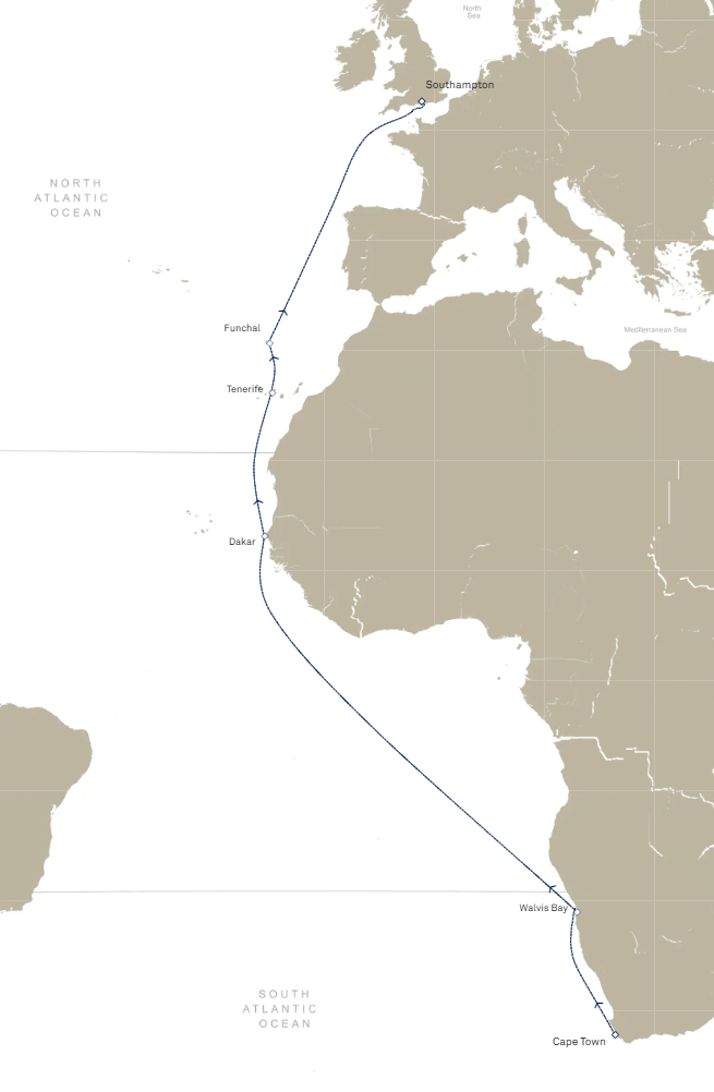 Le transport aérien est compris pour les traversées transatlantiques avec assistance francophone du 1er mai 2026 (M609C), 8 et 9 juin 2026 (M611D). Non applicables aux autres traversées transatlantiques.