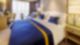 Un salon accueillant aux couleurs bleu, crème et doré pour prendre une boisson en écoutant de la musique ou pour lire un bon livre en profitant de la vue sur l’extérieur.