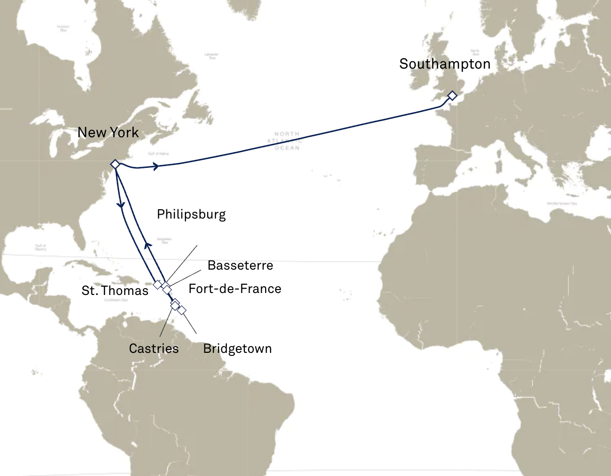 Pour le départ de Cherbourg le 9 juin 2026, réservation en cabine garantie, assignation du n° de cabine à quelques jours du départ.