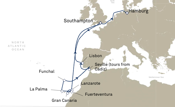 - Les excursions facultatives disponibles à Cherbourg (pour les passagers ayant embarqués au Havre le 8 juin) et à Southampton