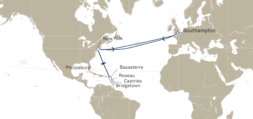 Le transport aérien est compris pour les traversées transatlantiques avec assistance francophone du 1er mai 2026 (M609C), 8 et 9 juin 2026 (M611D). Non applicables aux autres traversées transatlantiques.