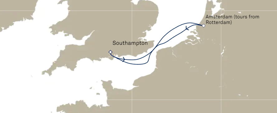 - Les excursions facultatives disponibles à Cherbourg (pour les passagers ayant embarqués au Havre le 8 juin) et à Southampton