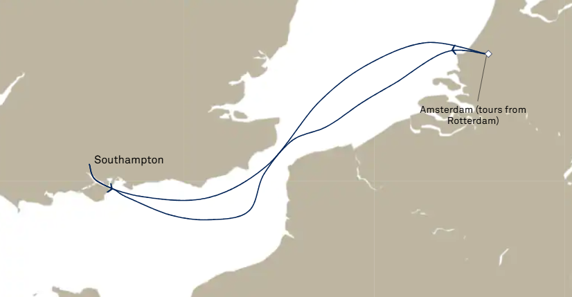 - Les excursions facultatives disponibles à Cherbourg (pour les passagers ayant embarqués au Havre le 8 juin) et à Southampton