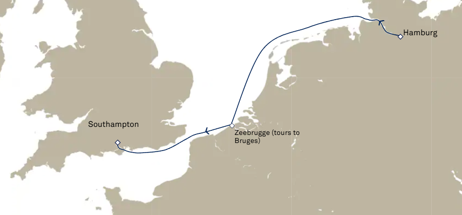 - Les excursions facultatives disponibles à Cherbourg (pour les passagers ayant embarqués au Havre le 8 juin) et à Southampton