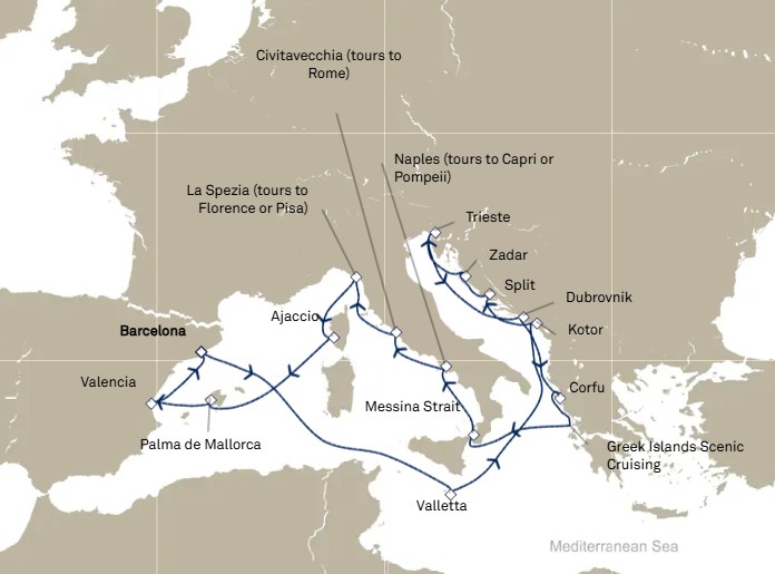 - Les excursions facultatives disponibles à Cherbourg (pour les passagers ayant embarqués au Havre le 8 juin) et à Southampton