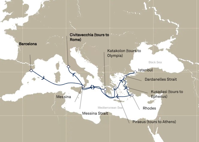 - Les excursions facultatives disponibles à Cherbourg (pour les passagers ayant embarqués au Havre le 8 juin) et à Southampton