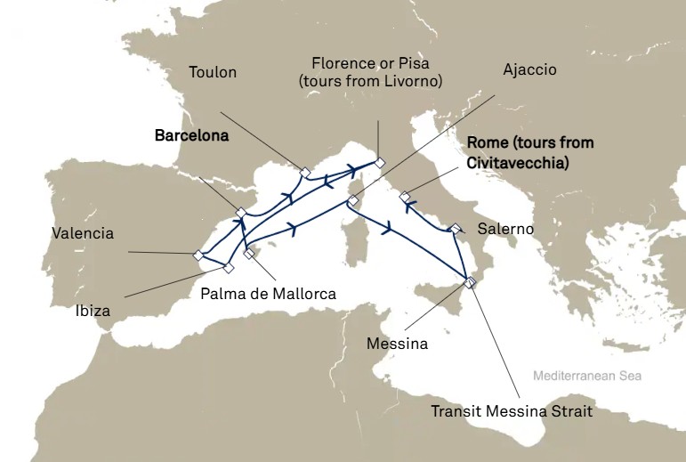 - Les excursions facultatives disponibles à Cherbourg (pour les passagers ayant embarqués au Havre le 8 juin) et à Southampton