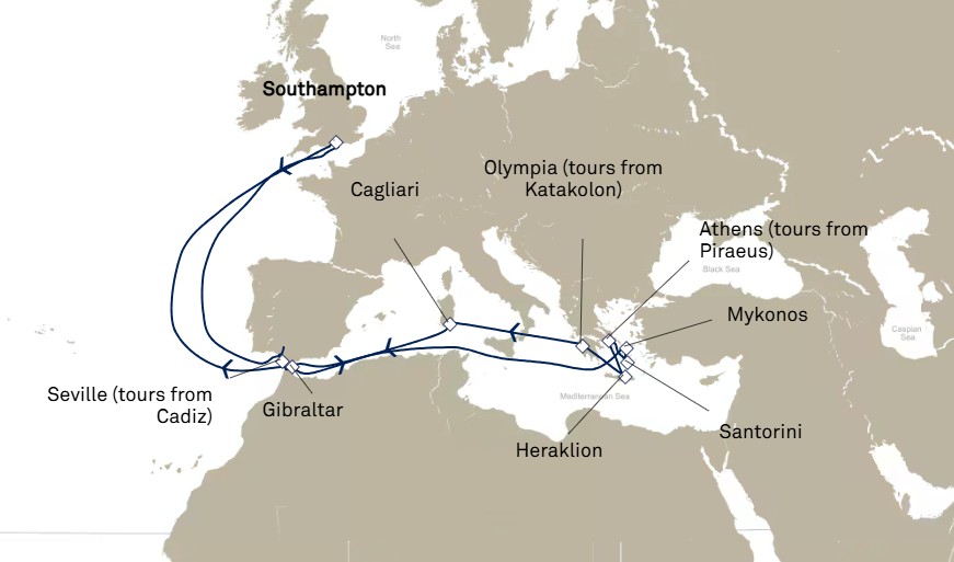 - Les excursions facultatives disponibles à Cherbourg (pour les passagers ayant embarqués au Havre le 8 juin) et à Southampton