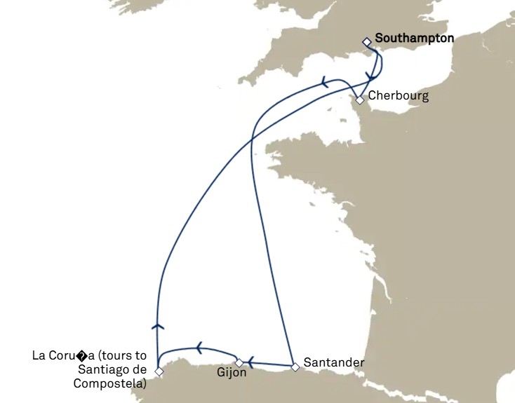 - Les excursions facultatives disponibles à Cherbourg (pour les passagers ayant embarqués au Havre le 8 juin) et à Southampton