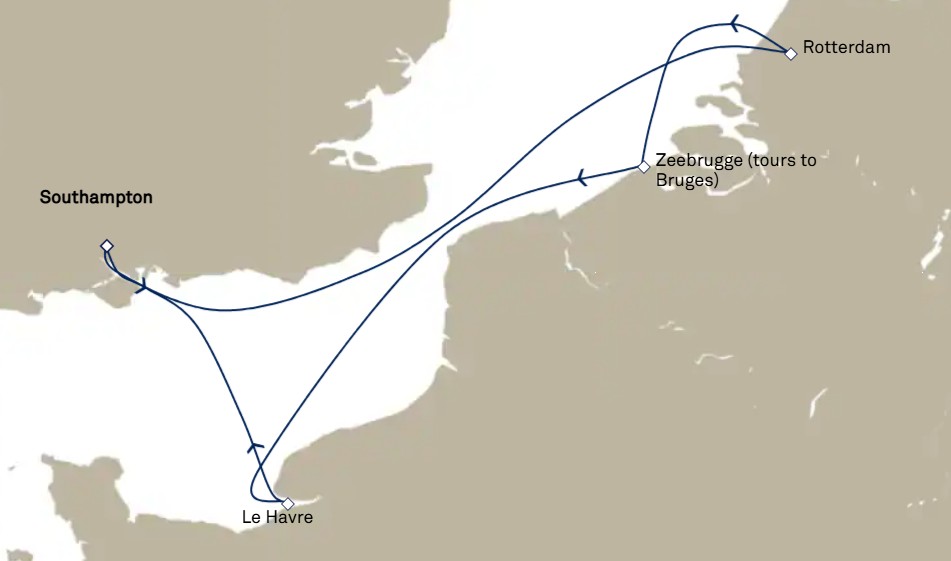 - Les excursions facultatives disponibles à Cherbourg (pour les passagers ayant embarqués au Havre le 8 juin) et à Southampton