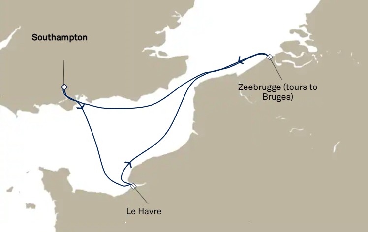 - Les excursions facultatives disponibles à Cherbourg (pour les passagers ayant embarqués au Havre le 8 juin) et à Southampton