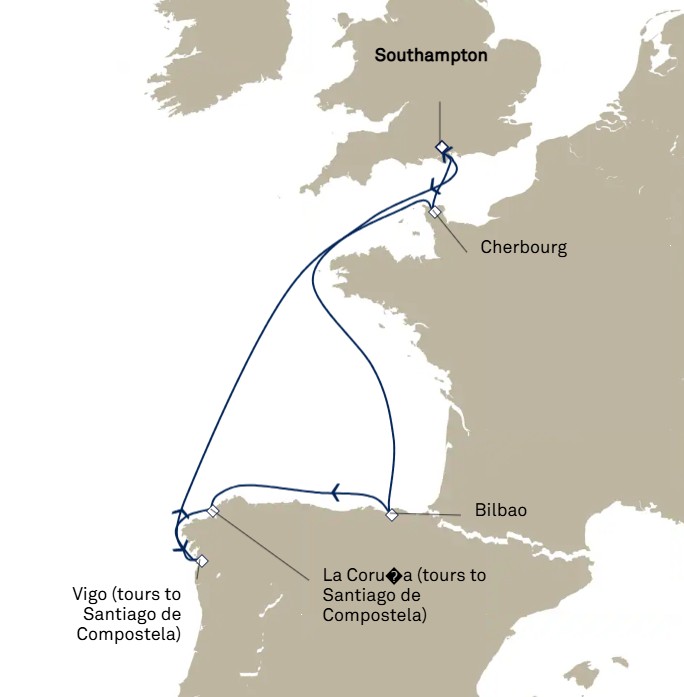 - Les excursions facultatives disponibles à Cherbourg (pour les passagers ayant embarqués au Havre le 8 juin) et à Southampton