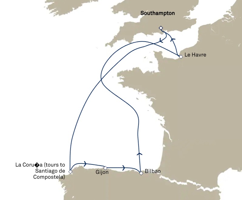 -          Les excursions facultatives disponibles à Cherbourg (pour les passagers ayant embarqués au Havre le 8 juin) et à Southampton