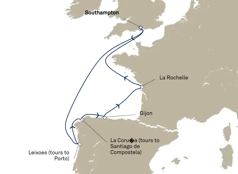 - Les excursions facultatives disponibles à Cherbourg (pour les passagers ayant embarqués au Havre le 8 juin) et à Southampton