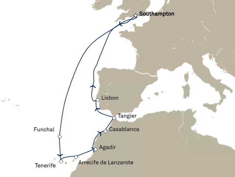 - Les excursions facultatives disponibles à Cherbourg (pour les passagers ayant embarqués au Havre le 8 juin) et à Southampton