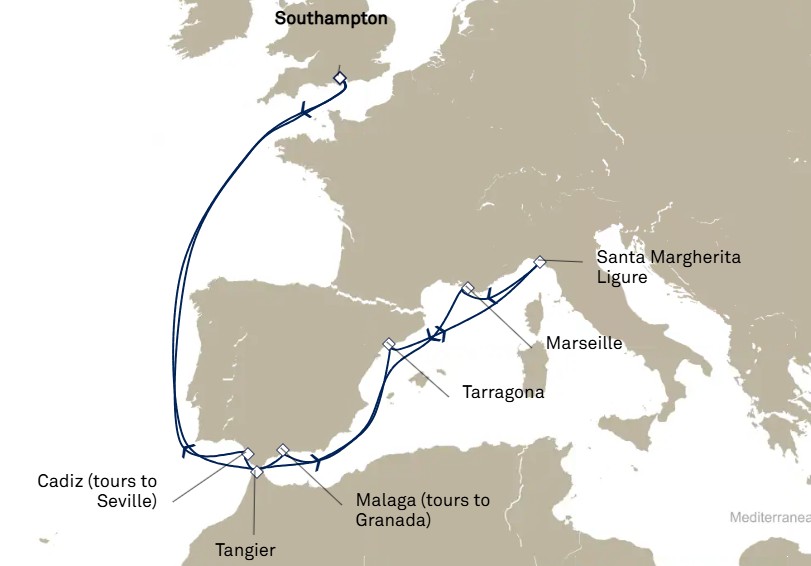 - Les excursions facultatives disponibles à Cherbourg (pour les passagers ayant embarqués au Havre le 8 juin) et à Southampton