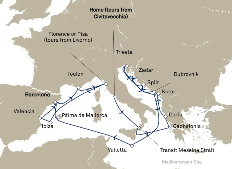 - Les excursions facultatives disponibles à Cherbourg (pour les passagers ayant embarqués au Havre le 8 juin) et à Southampton