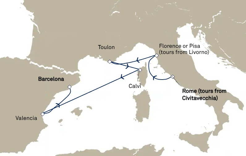 • Crédit à bord non applicable aux croisières de moins de 7 nuits, tarifs Save & Sail ou éventuels tarifs promotionnels.