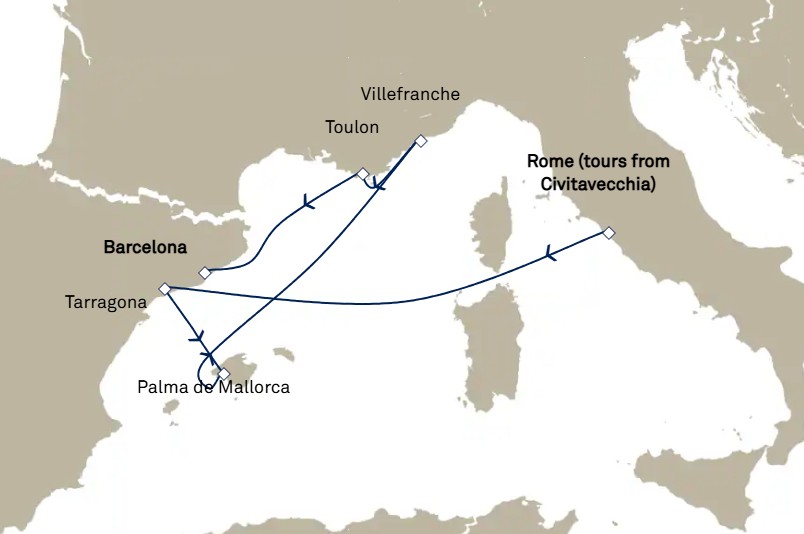 - Les excursions facultatives disponibles à Cherbourg (pour les passagers ayant embarqués au Havre le 8 juin) et à Southampton