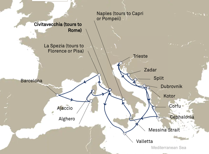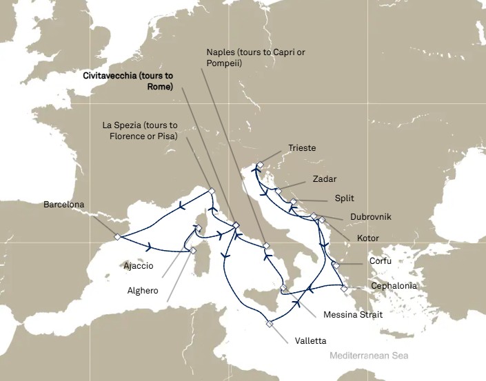 - Les excursions facultatives disponibles à Cherbourg (pour les passagers ayant embarqués au Havre le 8 juin) et à Southampton