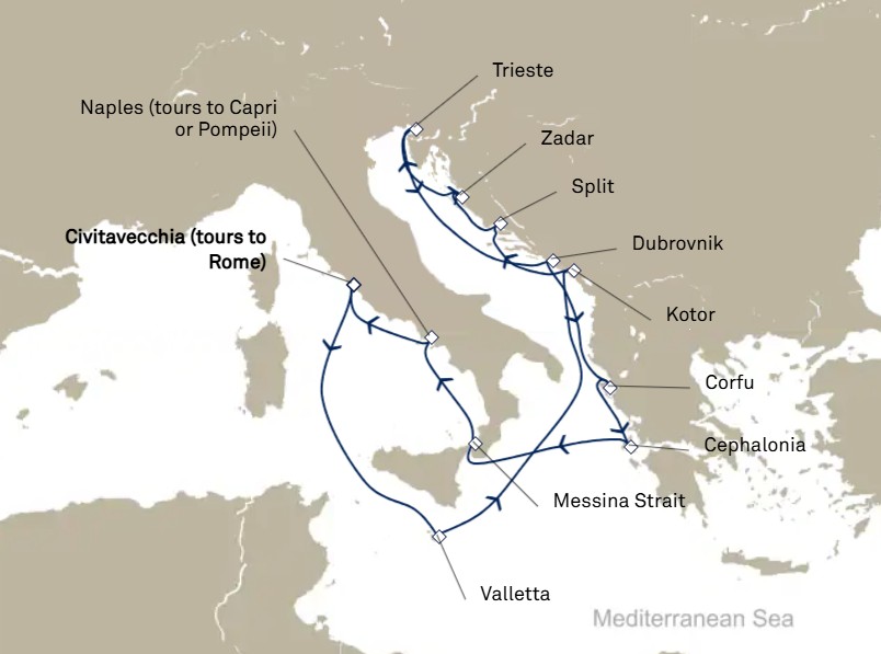 - Les excursions facultatives disponibles à Cherbourg (pour les passagers ayant embarqués au Havre le 8 juin) et à Southampton