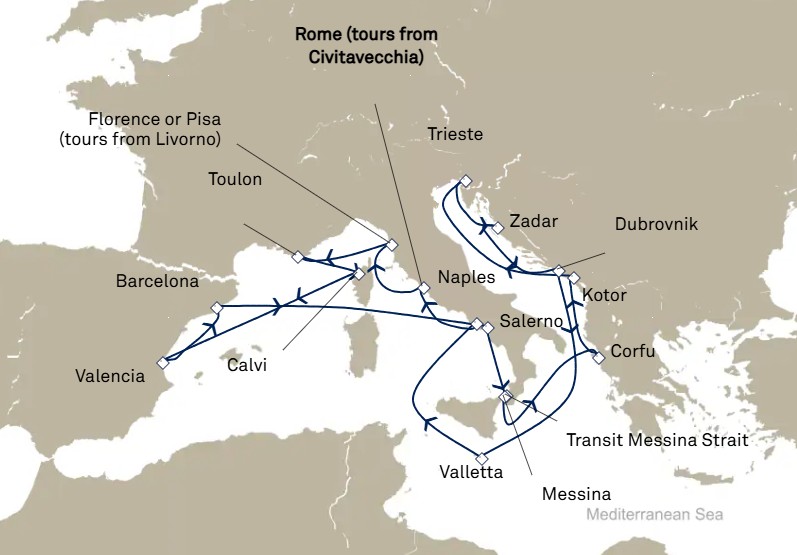 - Les excursions facultatives disponibles à Cherbourg (pour les passagers ayant embarqués au Havre le 8 juin) et à Southampton