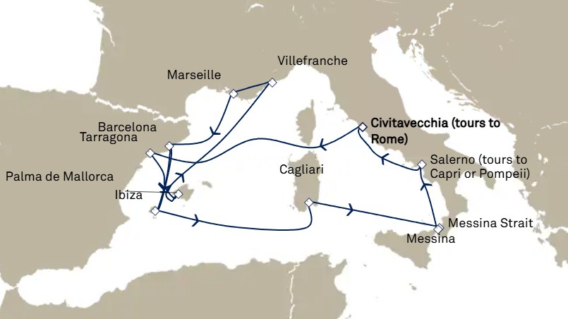 - Les excursions facultatives disponibles à Cherbourg (pour les passagers ayant embarqués au Havre le 8 juin) et à Southampton