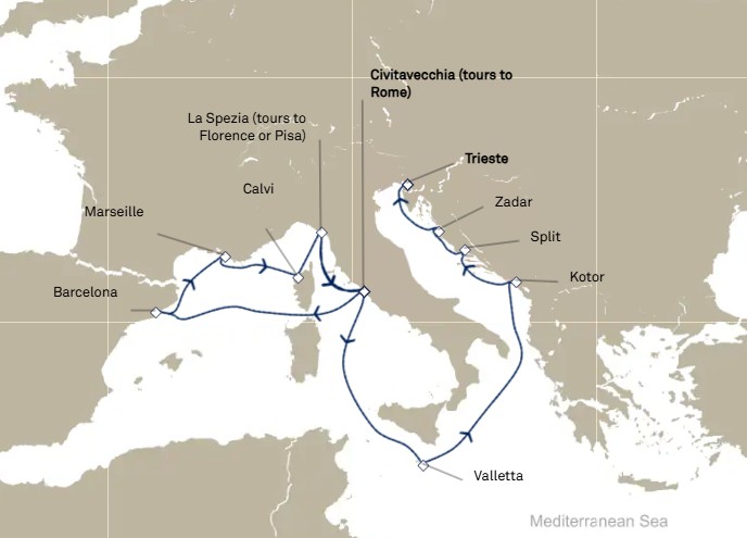 - Les excursions facultatives disponibles à Cherbourg (pour les passagers ayant embarqués au Havre le 8 juin) et à Southampton