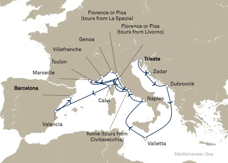 - Les excursions facultatives disponibles à Cherbourg (pour les passagers ayant embarqués au Havre le 8 juin) et à Southampton