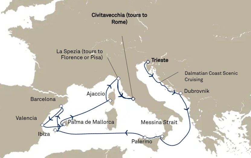 - Les excursions facultatives disponibles à Cherbourg (pour les passagers ayant embarqués au Havre le 8 juin) et à Southampton