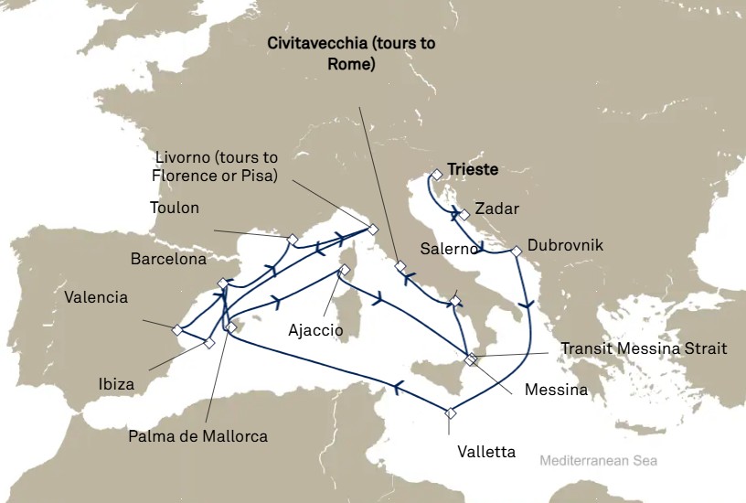 - Les excursions facultatives disponibles à Cherbourg (pour les passagers ayant embarqués au Havre le 8 juin) et à Southampton