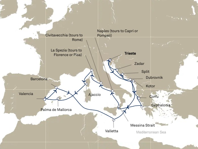 - Les excursions facultatives disponibles à Cherbourg (pour les passagers ayant embarqués au Havre le 8 juin) et à Southampton