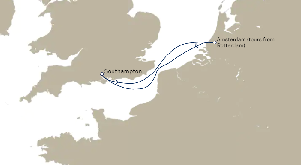 - Les excursions facultatives disponibles à Cherbourg (pour les passagers ayant embarqués au Havre le 8 juin) et à Southampton