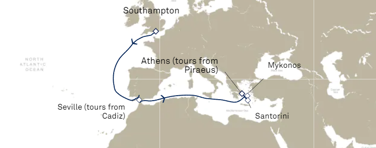 Départ: Southampton - Royaume-Uni / Arrivée : Athènes (Le Pirée) - Grèce