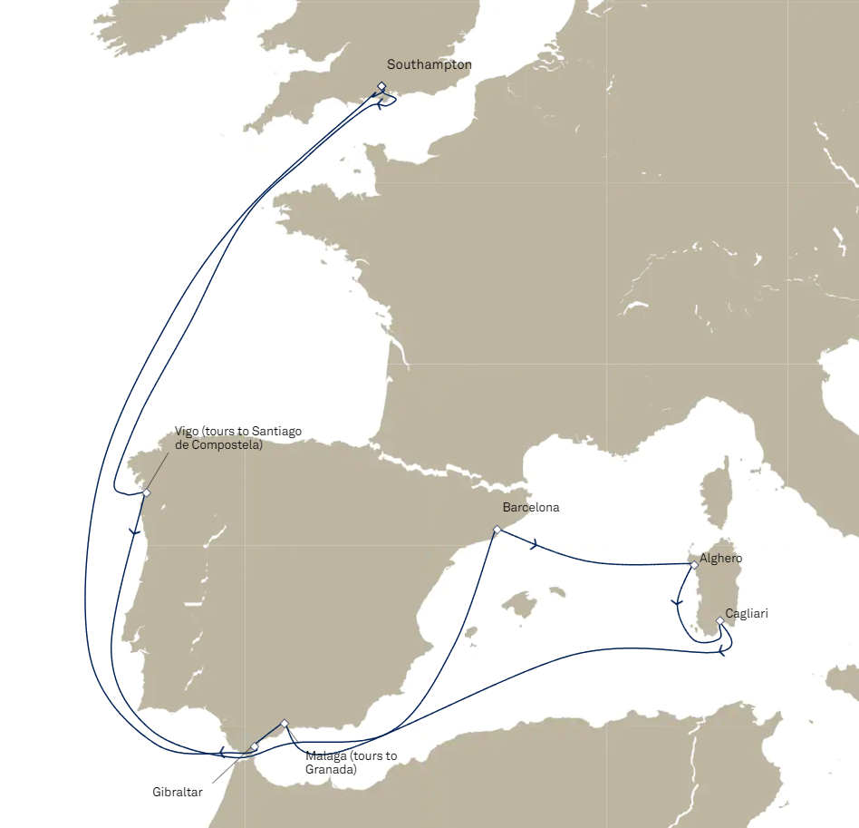 - Les excursions facultatives disponibles à Cherbourg (pour les passagers ayant embarqués au Havre le 8 juin) et à Southampton