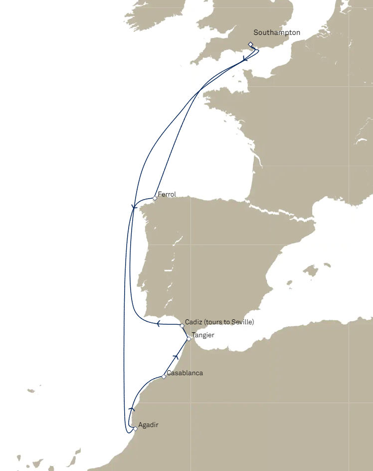 - Les excursions facultatives disponibles à Cherbourg (pour les passagers ayant embarqués au Havre le 8 juin) et à Southampton