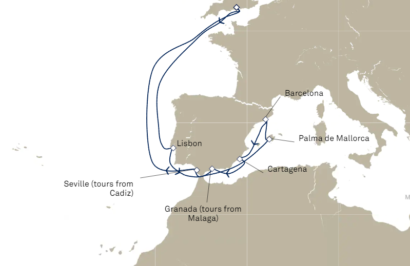 - Les excursions facultatives disponibles à Cherbourg (pour les passagers ayant embarqués au Havre le 8 juin) et à Southampton