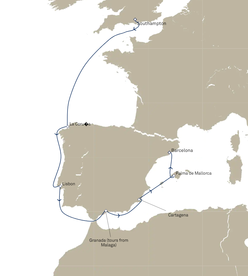 - Les excursions facultatives disponibles à Cherbourg (pour les passagers ayant embarqués au Havre le 8 juin) et à Southampton