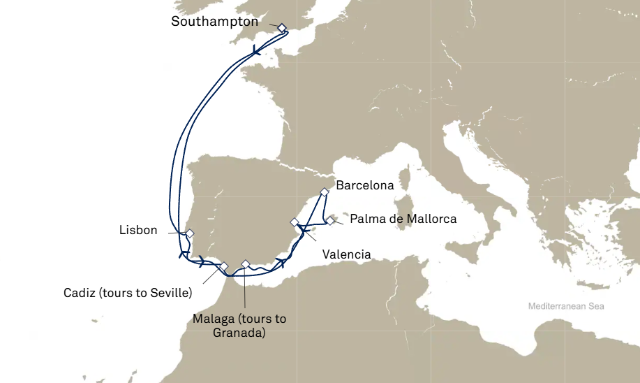 - Les excursions facultatives disponibles à Cherbourg (pour les passagers ayant embarqués au Havre le 8 juin) et à Southampton