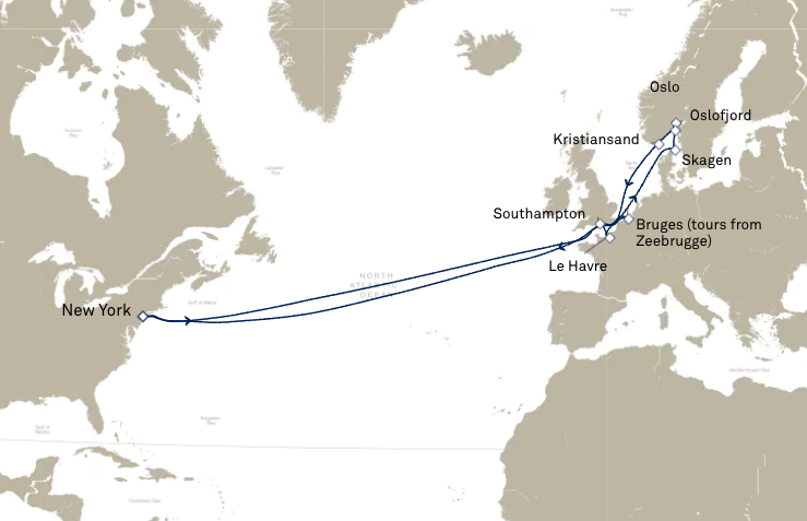 Pour le départ de Cherbourg le 9 juin 2026, réservation en cabine garantie, assignation du n° de cabine à quelques jours du départ.