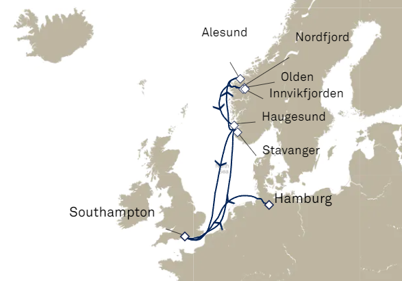 - Les excursions facultatives disponibles à Cherbourg (pour les passagers ayant embarqués au Havre le 8 juin) et à Southampton