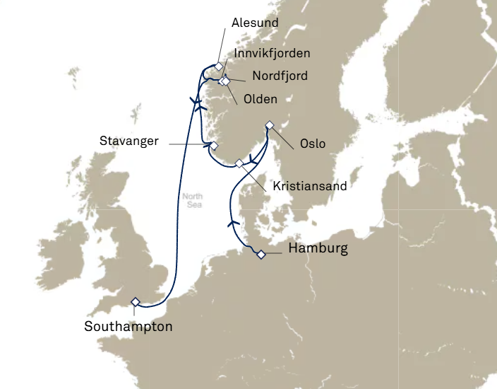 Départ : Hambourg - Allemagne / Arrivée : Southampton - Royaume-Uni
