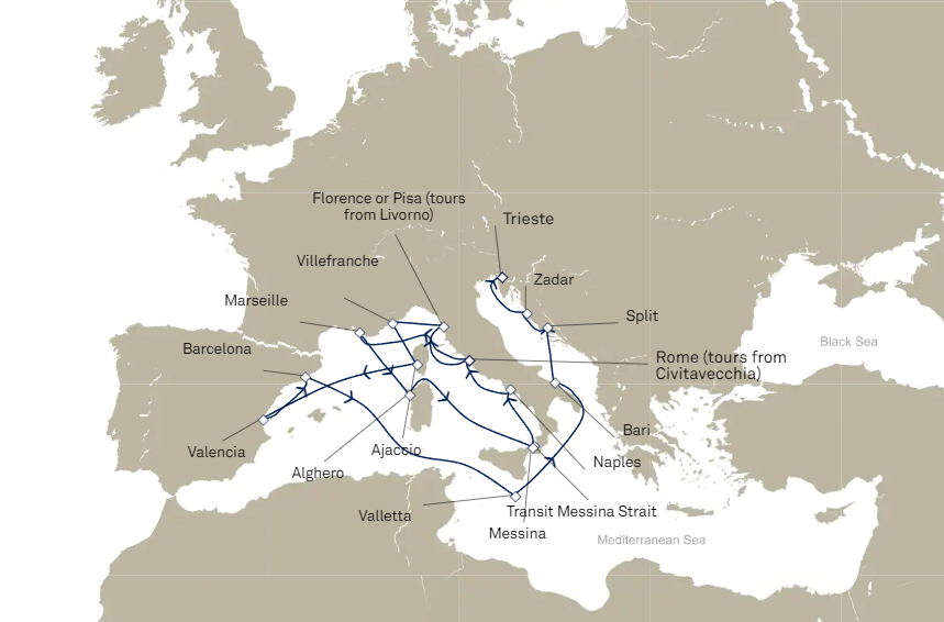 - Les excursions facultatives disponibles à Cherbourg (pour les passagers ayant embarqués au Havre le 8 juin) et à Southampton