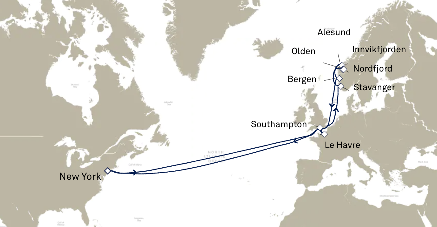Pour le départ de Cherbourg le 9 juin 2026, réservation en cabine garantie, assignation du n° de cabine à quelques jours du départ.