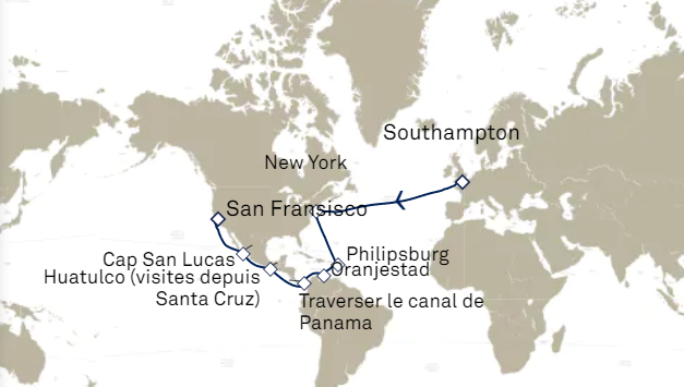Grand Voyage : Amérique du Nord et Centrale, de Southampton à San Francisco