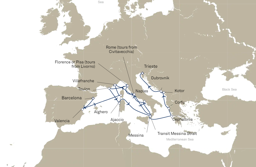 - Les excursions facultatives disponibles à Cherbourg (pour les passagers ayant embarqués au Havre le 8 juin) et à Southampton