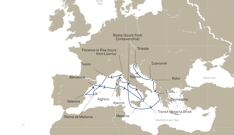 - Les excursions facultatives disponibles à Cherbourg (pour les passagers ayant embarqués au Havre le 8 juin) et à Southampton